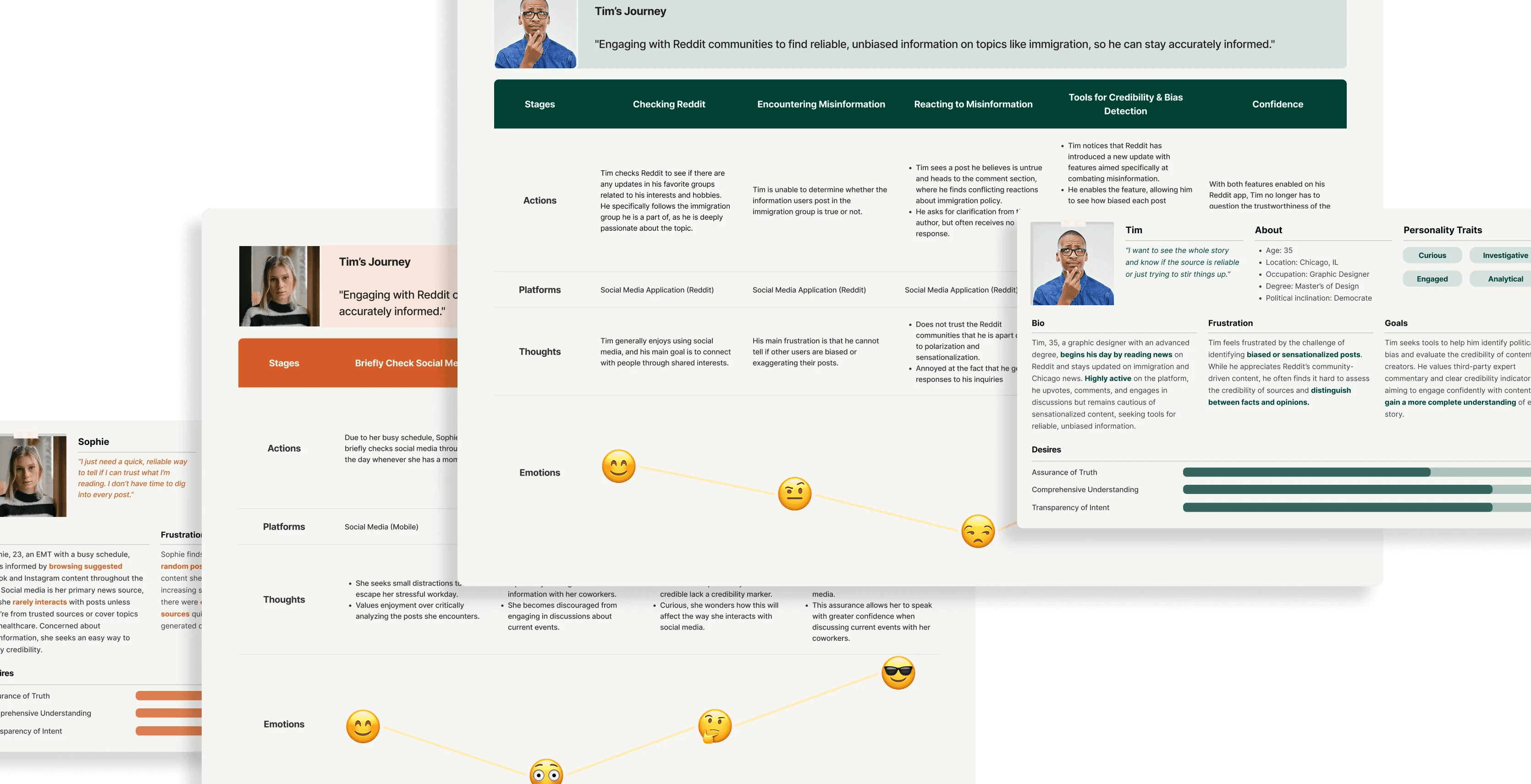We virtually interviewed participants to understand how people consume news and approach fact-checking. These interviews validated our contextual inquiry findings and provided deeper insight into user motivations and decision-making.